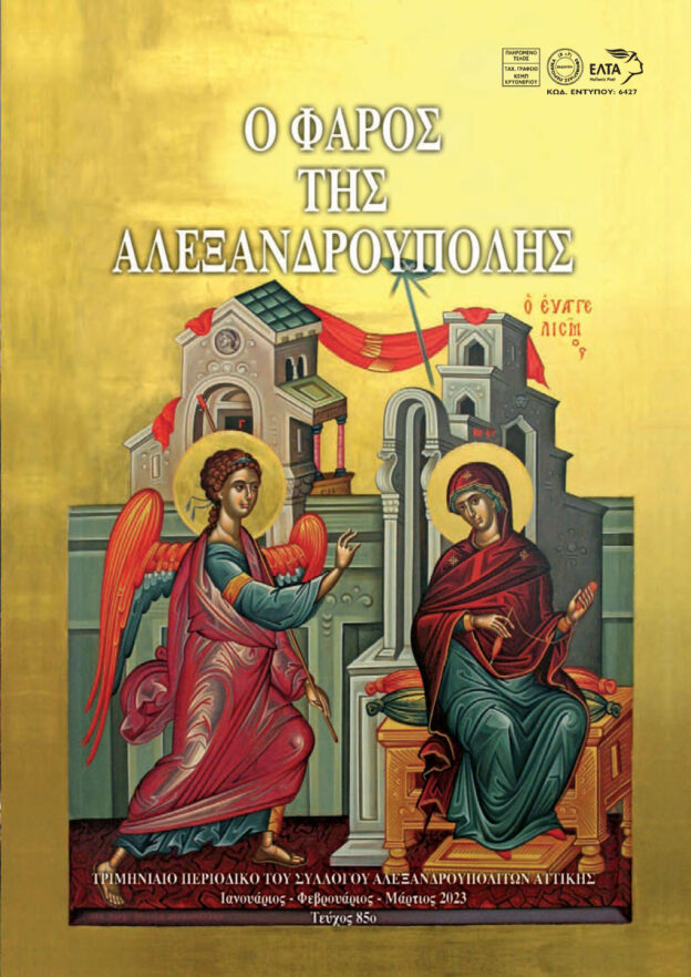 ΙΑΝΟΥΑΡΙΟΣ – ΦΕΒΡΟΥΑΡΙΟΣ – ΜΑΡΤΙΟΣ 2023 Τριμηνιαίο περιοδικό Πολιτιστικού και Ψυχαγωγικού Συλλόγου Αλεξανδρουπολιτών Αττικής