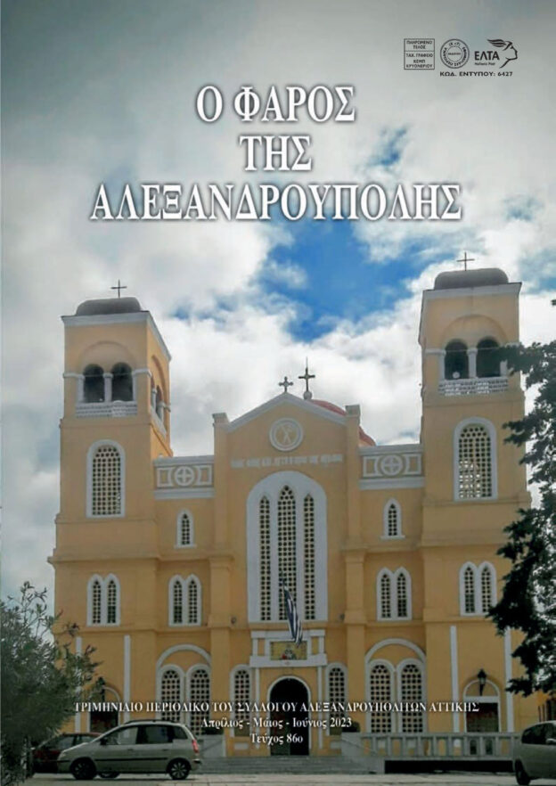 ΑΠΡΙΛΙΟΣ – ΜΑΪΟΣ – ΙΟΥΝΙΟΣ 2023 Τριμηνιαίο περιοδικό Πολιτιστικού και Ψυχαγωγικού Συλλόγου Αλεξανδρουπολιτών Αττικής